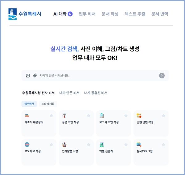 수원특례시는 챗GPT와 제미나이를 행정 전반에 배치했습니다. 보도자료 작성이나 민원 응대 초안은 AI에게 맡기고,