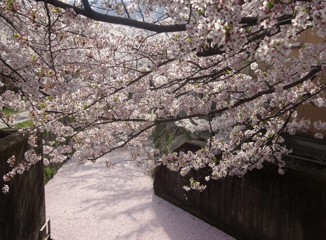 *철학의 길: 은각사부터 난젠지까지 이어지는 수로 옆 벚꽃길입니다. 바람이 불 때 수로 위로 떨어지는 벚꽃잎(하나이카다)은 눈물 나게 아름답습니다.