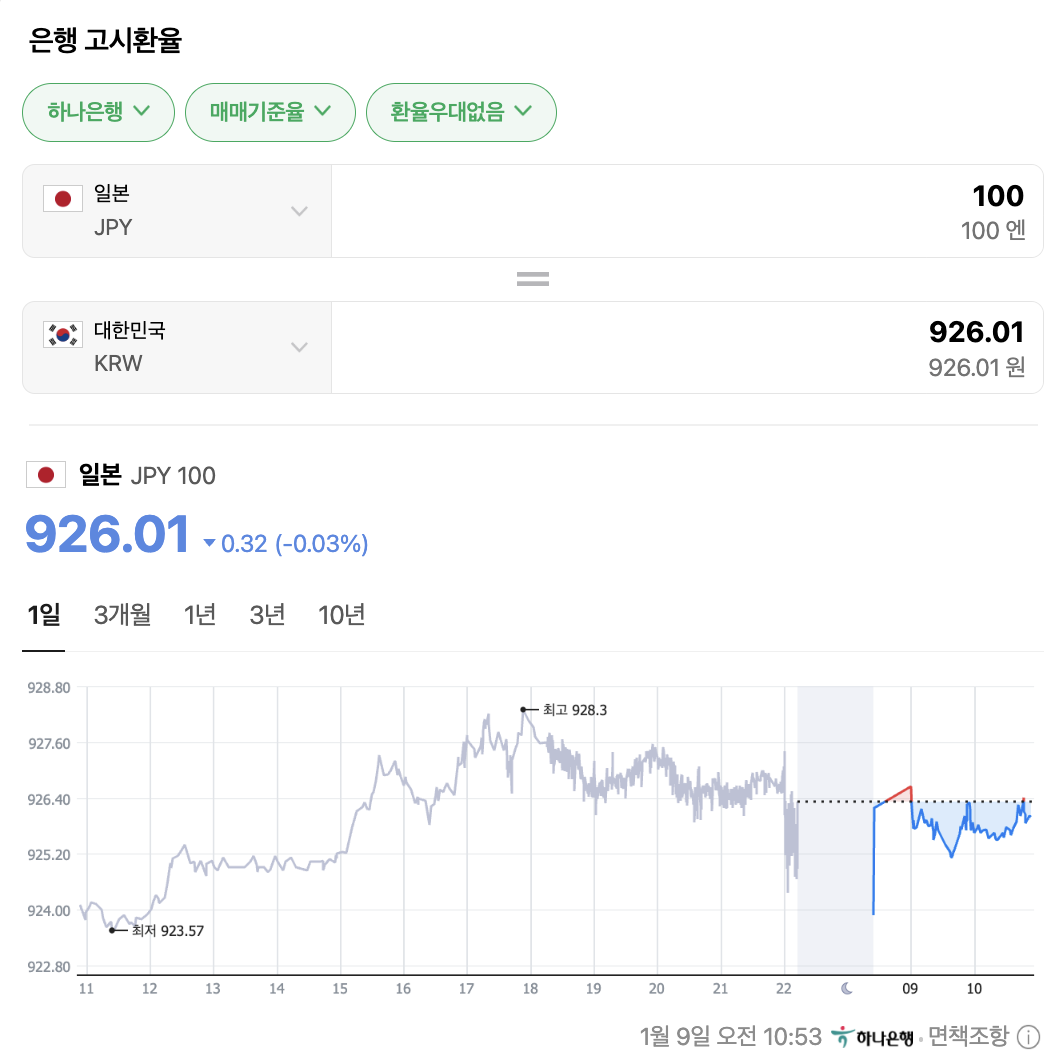 어제는 910원대였던 엔화가 오늘은 925원, 내일은 950원을 향해 달려갈지도 모르는 이 변동성의 시대!