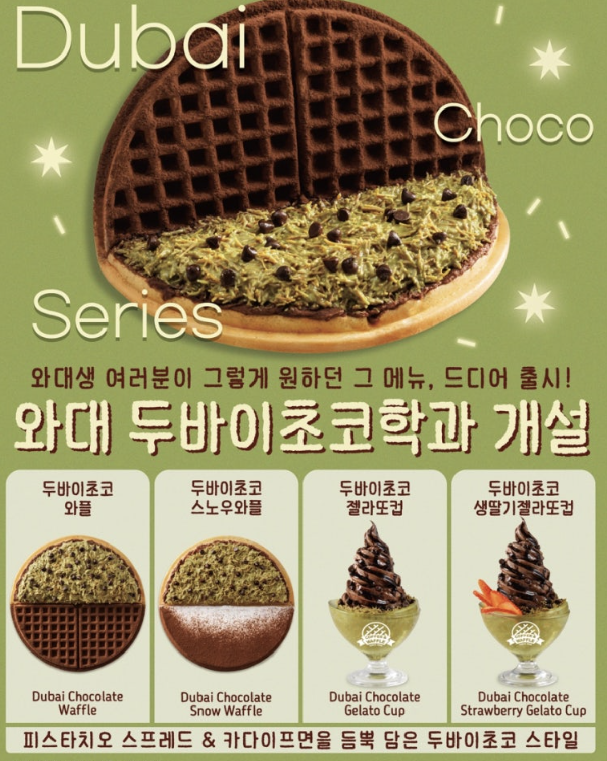 만 원도 안 되는 가격으로 즐기는 '두바이의 맛', 내일 점심시간 전국 와플대학 매장이 붐빌 것 같으니 미리미리 앱으로 대기 타시길 추천드립니다!