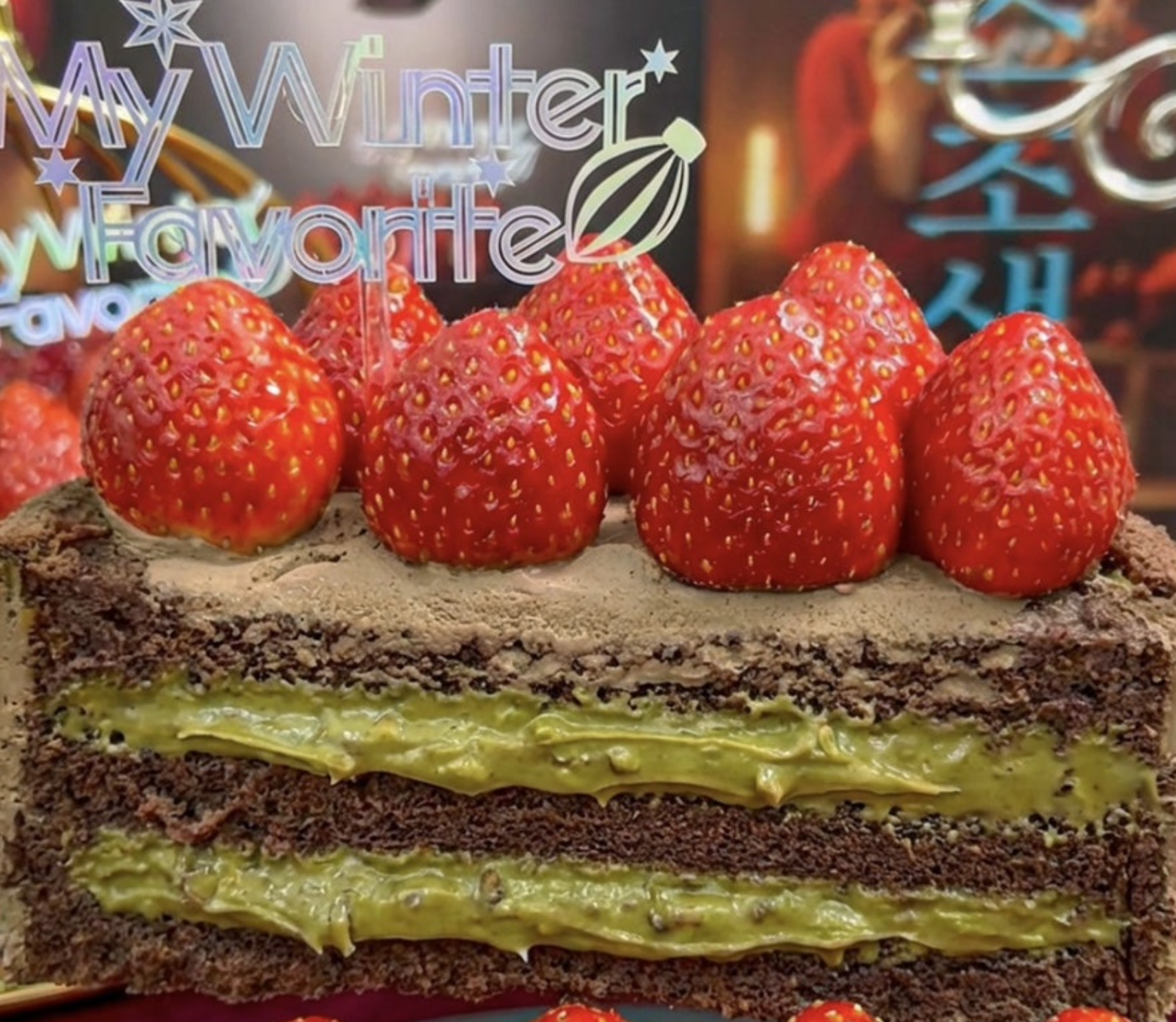 이름하여 '두초생 '! 기존 스초생의 초콜릿 시트와 생크림, 생딸기 조합에 피스타치오 스프레드와 바삭한 카다이프가 층층이 샌드되어 역대급 식감을 자랑합니다.