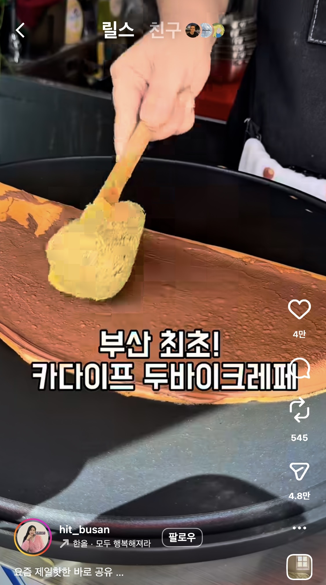 한 입 베어 물면 떡의 찰진 식감 뒤에 카다이프의 '콰작' 하는 소리가 들리는데, 이게 정말 중독적입니다. 길거리에서 먹기에도 아주 편해요!