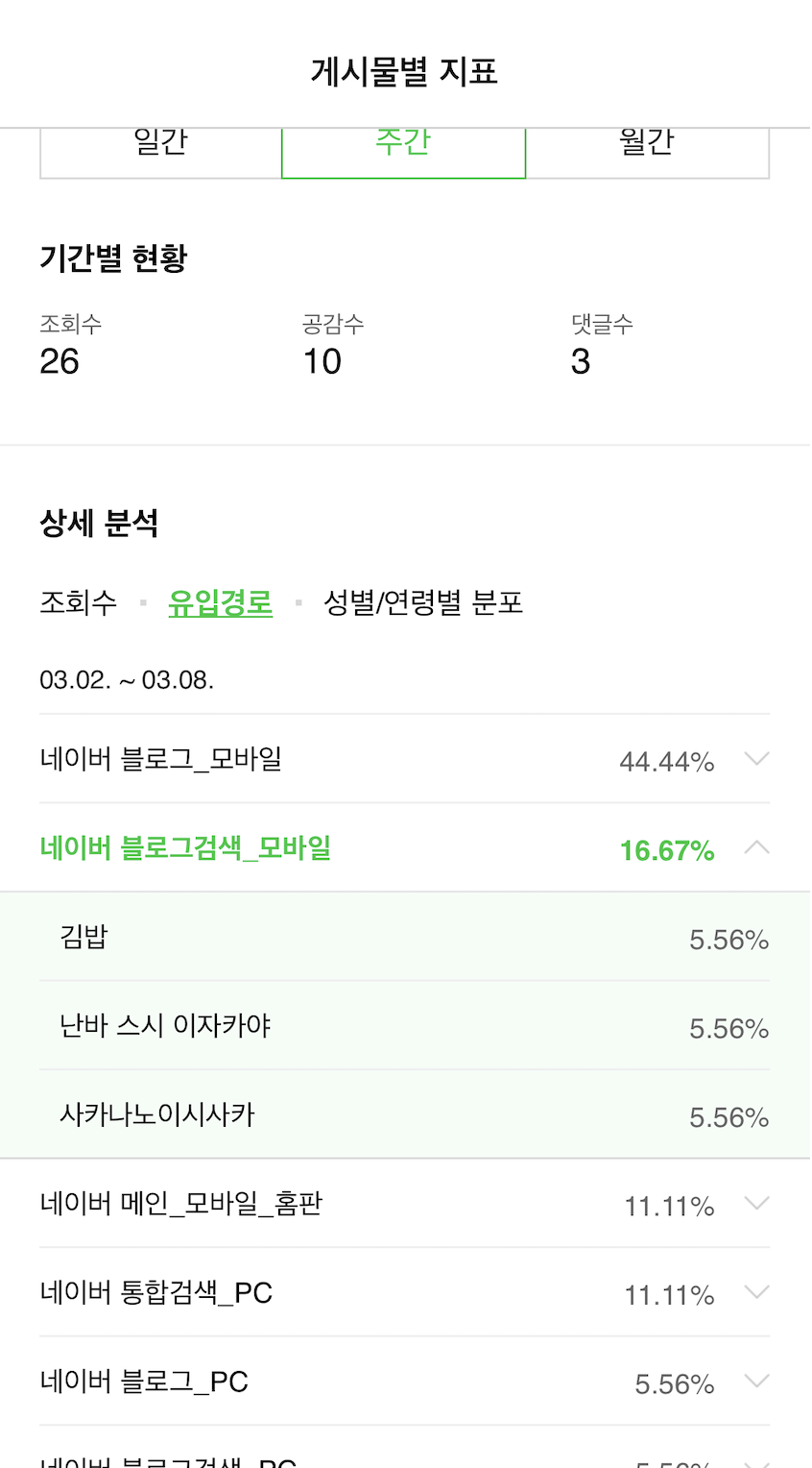 NAVER ๋ธ๋ก๊ทธ ๊ฒ์ ํ, ์๋จ์ [ํต๊ณ] ๋ฉ๋ด๋ฅผ ํด๋ฆญํ์๋ฉด