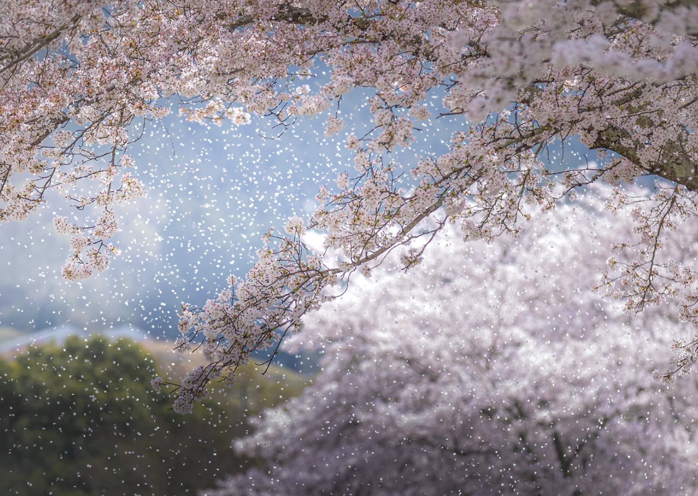 🌸 1. 비 오는 날의 특권: 벚꽃 눈(사쿠라 후부키)과 핑크빛 카펫