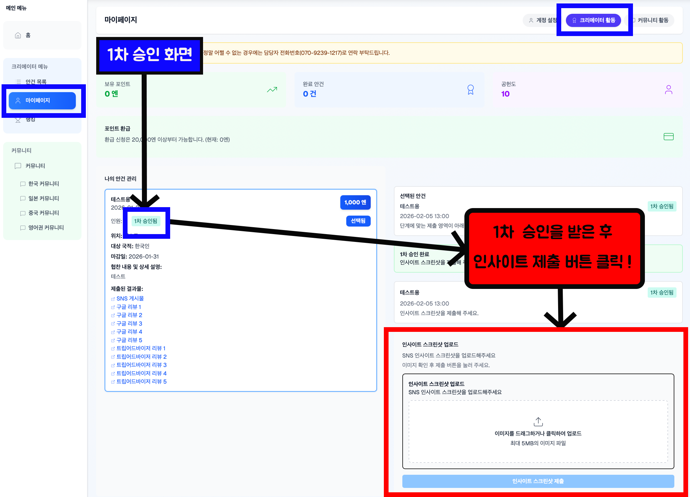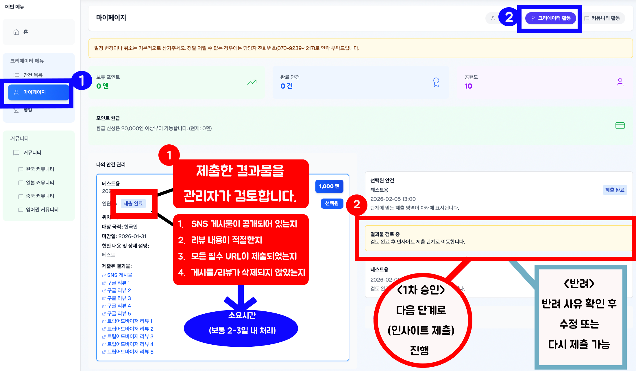 ⑤ 1차 승인 대기 및 포인트 지급 가이드